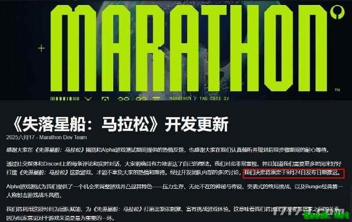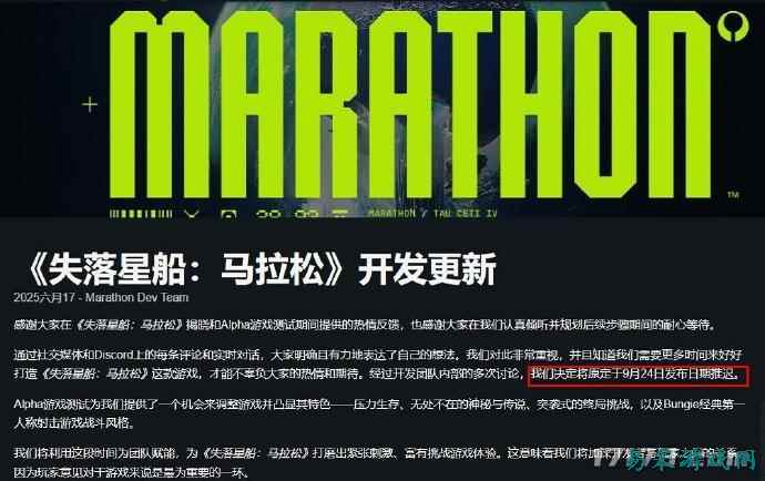 - 《失落星船:马拉松》宣布延期发售 需更多时间准备