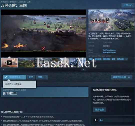 网易勇闯国产单机之作《万民长歌:三国》Steam商店现已公开由网易《率土之滨》团队自研的单机历史战争策略游戏《万民长歌:三国》Steam商店现已公开...