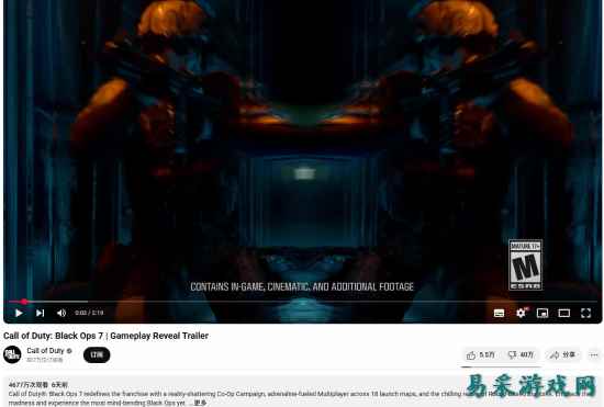 上周,动视发布了《使命召唤:黑色行动7》的游戏预告片,却遭到大量吐槽。截至发稿时,播放量已高达4...