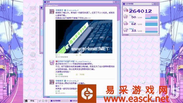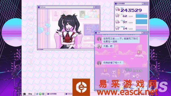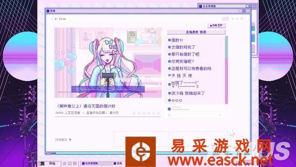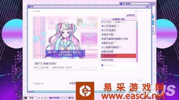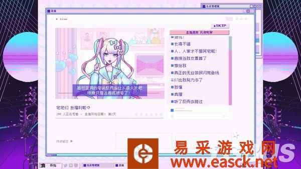 2011年Twitch推出,让普通玩家们也能在网络上进行游戏实况与赛事转播。2012年Youtube也紧随其后,将实况与直播扩展到了更多群体,诞生了一批最早的Youtuber。 而从2015年开始,各个社交平台也逐渐开放了在线直播功能,不仅是游戏领域,还包含了生活、歌舞、美食、美妆领域,甚至是不可描述的领域,无论哪种群体都能用最简单的方式,在满足自己的表演欲的同时,还能从平台分成中获得利益。 2016年绊爱开始活动,用虚拟形象和真人动作捕捉结合,诞生了新的领域“虚拟Youtuber”。 在随后的几年里绊爱与Vtuber的概念开始逐渐被直播观众们接受并喜爱,这段时间里诸多新人Vtuber也如雨后春笋般出道,成为了网络文化中非常重要的一部分。 《NEEDY GIRL OVERDOSE(主播女孩重度依赖)》就是这样一款基于上述背景的游戏,玩家需要扮演“阿P”,作为制作人,将自己的女友“糖糖”培养成最棒的主播,用虚拟形象“超绝最可爱天使酱”榨干观众们的钱包——至少游戏介绍中是这么说的。 照亮混沌令和时代互联网的一道光“这是一股照亮混沌的令和时代互联网的一道光,给在电子的海洋里冲浪的阿宅们带来笑容。”这是《主播女孩重度依赖》主题曲的前两句歌词,也正是游戏在表面上体现给玩家们的内容。 如果你是一名“二次元(非贬义)”,或者说是御宅文化爱好者,而且还特别喜欢电波系,那么强烈推荐去看看本作主题曲的PV,能对本作的风格有着更深入的了解。 游戏从打开游戏的一瞬间,随着“滴”的一声音效,一股早期网络冲浪的风格就扑面而来。 启动画面与电脑UI模仿了Windows 95,存档界面模仿了Windows XP,电脑桌面上的图标又都是模仿了现在的Youtube、Line和推特。玩家需要在这样一台复古又现代的操作系统上和糖糖互动,以涨粉为目标不断直播。 直播的方式很简单,使用电脑上的图标进行各种活动让糖糖产生灵感,每天晚上就能围绕想出来的灵感作为话题进行直播。本作精心设计了每场直播的台词与演出,观看游戏中直播的演出也是一种乐趣。 直播画面右边是在线评论栏,就如同现实中的直播一样,有鼓励主播的,有骂主播的。当然,也有带节奏的。 玩家在糖糖直播时也不能闲着,时刻得注意评论区中是否有不当言论,随时准备夹掉它们。偶尔评论区也会出现不能删除的彩色SC留言,玩家就得挑选出一些好的SC,让糖糖读出来增强直播互动性。 右上角打开的“任务管理器”一直显示着糖糖的状态,直播就会积累压力,冷落糖糖就会降低好感,遇上坏事就会增长阴暗度,玩家需要时刻掌握这些数据,维持它们的平衡。 而在“JINE”聊天软件上糖糖会经常发来讯息,玩家可以用表情包与选项对话来进行回复,这也决定了糖糖未来的走向。 游戏表面上的整体玩法就是一款主播题材的ADV游戏,你有一个黏人且可爱的女友,观众们有一个“超绝可爱”的“天使”。你得到了粉丝,观众们得到了快乐。 一切看上去都很美好,但这只是表面。 这有趣的互联网便是七彩的幻觉《主播女孩重度依赖》整款游戏就如同主角“糖糖”的人设一般,既不是传统的真人主播,也不是真正意义上的虚拟主播,而是介乎于真人主播与虚拟直播之间的设定,夹杂在虚构与真实之间。 游戏在画面上虽然尽可能的表现出“虚拟”,但想要表达的却意外的“真实”。 如果你总是选择最普通的游戏直播、杂谈直播,那么涨粉是极其缓慢的。但如果你选择福利直播、ASMR直播,那么你很快就能达到百万粉丝的金盾目标。 解锁这些直播就得安排糖糖的每日行程,普通一点的就是交流、睡觉、上网冲浪、出门逛街。除此之外,游戏中还提供了色色、吃药、约会软件这种不寻常的灵感发现方式。 不过需要注意的是,本作尽管有着这些选项,但并没有任何过激或不合适的画面出现。 就好像虚拟主播都有“中之人”的概念一样,推上除了超绝最可爱天使酱的账号,还有着糖糖不为人知的个人账号。 每次行动过后,你都能看到超绝最可爱天使酱围绕每日行程,发出的粉丝爱看的那些推,引来粉丝们的各种热心发言。同时你也能看到糖糖私下里发的推,除了你任何人都看不到,但都是她的真实想法。 表面上微笑着对待每一位粉丝,总是纯真的以乐观的态度对待每一位观众。但观众们肯定想不到,下播之后糖糖总是沉溺在与“你”的爱情之中,并厌恶着屏幕前的每一个“油腻老男人”、“宅宅们”。 屏幕前的观众们自然也不都是无辜群众,进行美妆直播时,会有人打着无法删除的SC来口嗨“丑逼,取关了”。进行ASMR直播时,各种无法直视的评论也充满了整个屏幕。 这里要特别说一下中文化,翻译得特别接地气,基本都是大家在国内网络中能看到的语言,这点很让人有代入感。 大家都在用互联网作为媒介,以虚拟作为掩饰,将自己内心中最真实的黑暗面发泄了出来,无论主播还是观众都是如此,构成了游戏中如同“七彩幻觉”一般的互联网世界。 疯狂的沉醉在疯狂之中本作的游戏方式对我来说并不算新鲜,无非就是各种可能性的组合,找到一个效率涨粉的方式,那么金盾很快就能入手,Happy End自然就到来了。 这样想着的我很快就上当了,依靠属于“流量密码”的ASMR和福利直播,我很快就让糖糖拿到了金盾,住上了豪宅,前途看似一片光明。 然而事实并非如此,游戏却给我来了个意想不到的结局,避免剧透不能说太详细,但大意就是“当所有人都沉迷在虚