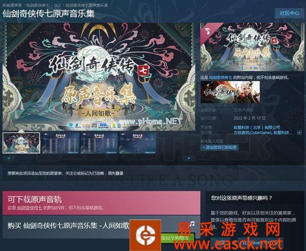近日,《仙剑奇侠传七原声音乐集》在Steam平台上正式发售,售价为49元。该音乐集是《仙剑奇侠传七》游戏的曲目专辑。