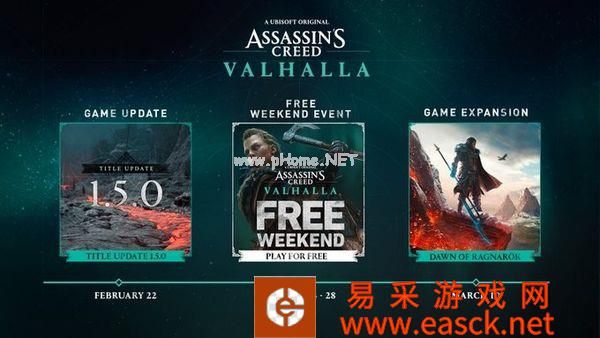 《刺客信条》官方公布了《刺客信条:英灵殿》2022年首个更新线路图。根据线路图显示,《刺客信条:英灵殿》将在2月22日迎来1.5版本更新,此外还将于2月24日到2月28日开启免费试玩活动,新DLC“末日曙光”将在3月10日上线。