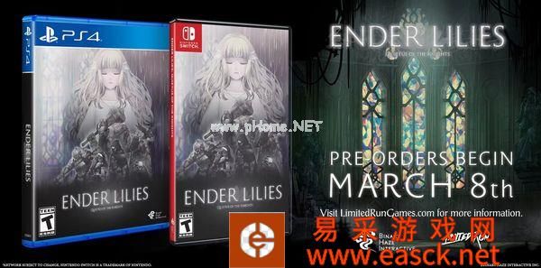 奇幻冒险游戏《终结的百合花:骑士们的救赎》(ENDER LILIES: Quietus of the Knights)官方宣布,PS4和Switch版游戏于今日(3月8日)正式开启预售,预计将于今年5月份出货。PS4和Switch版《终结的百合花》都包括通常版和珍藏版两个版本,通常版售价为39.99美元;珍藏版售价为64.99美元。另外,官方还表示,本作的销量目前已经突破了60万套。