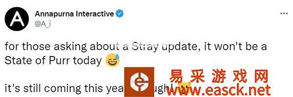 近日,有消息传出猫咪冒险游戏《Stray》可能将延期跳票,此前该作宣布将于2022年初登陆PS4和PS5。不过,发行商Annapurna Interactive发布了最新的消息称,《Stray》仍会在2022年发售。