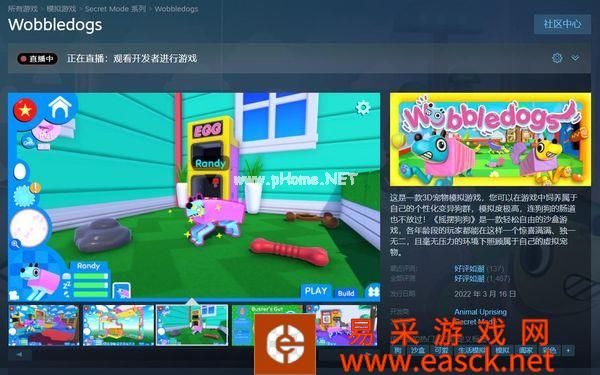 近日,由Animal Uprising开发的3D宠物模拟新游《摇摆狗狗》现已在Steam平台发售,游戏售价为88元,支持中文,目前Steam平台评价为“好评如潮”。