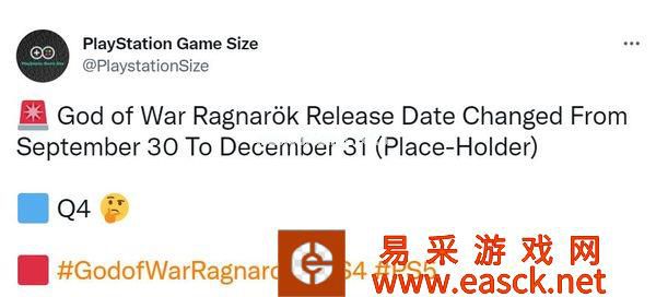 日前有玩家透露《战神:诸神黄昏》在PSN后台的发售时间介于9月27日与10月11日之间。然而有玩家再度表示,现后台这一数据已经被修改为12月31日,一般来说“12月31日”代表第四季度,这可能意味着《战神:诸神黄昏》将再度推迟发售。
