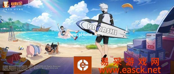旗木卡卡西[元气夏日]登场 6月3日旗木卡卡西[元气夏日]踏浪而来,时装、通灵兽和入场效果也将一同登场。帅气逼人会冲浪,掌握了“最强体术奥义”,还喜欢看书的忍者,豚豚无法拒绝!