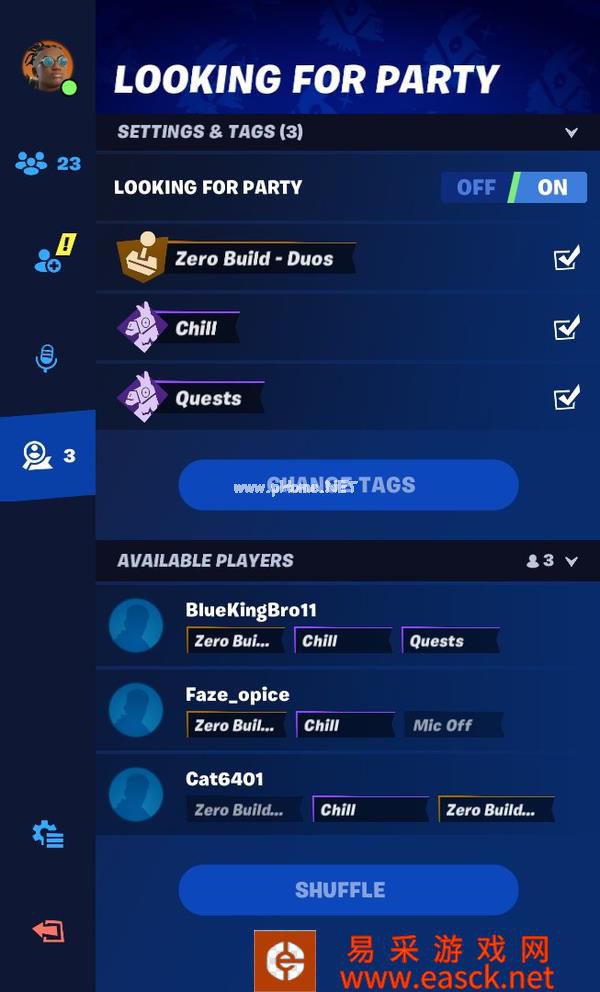 《堡垒之夜》推出寻找队友社交标签工具测试
