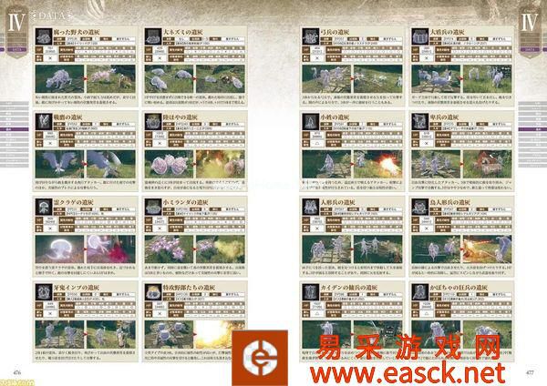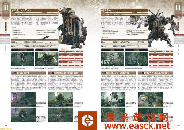 攻略书的第一章为游戏系统介绍,其中详细地介绍了多种战斗状态的信息,还列出了每一项UI的含义,以及角色异常状态的情报表格等等。 第二章是故事,其中包括游戏的剧情背景介绍、游玩地图结构分析以及各个场景的NPC分布情况。 第三章专门介绍了游戏中出现的大量敌人,从小型敌人到BOSS,从背景到招式解析以及应对策略等等。 最后一章是数据,从武器装备到消耗道具,各类物品的属性数据均可以查询到结果。