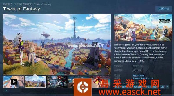 完美世界旗下的开放世界冒险游戏《幻塔》已上架Steam商店页面,不过该游戏为海外版本,所以国区玩家无法游玩到此版本《幻塔》,同时也不支持中文,该游戏预计将于2022年下半年推出。