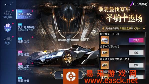 圣洁光翼 圣骑士凭借五和圣光翼,圣骑士成为了当之无愧的常胜将军,在即将到来的圣骑士回归活动中,你将有机会避免在地表上获得最快的赛车! 在活动期间,驾驶员可以获得圣骑士体验卡或圣骑士盲盒获得圣骑士体验卡或圣骑士盲盒优惠券。使用盲盒优惠券,您可以在独家盲盒机中获得惊喜奖励,并有机会直接获得永久圣骑士!在连续十次抽时,您还可以享受惊喜折扣,获得大奖的可能性更高!