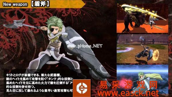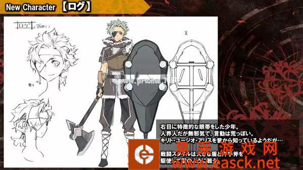 此外,官方还披露了新角色和武器的相关信息: 1.新角色ログ,一个右眼戴眼罩的男孩。头脑简单却行为粗暴,似乎很早就认识了桐人,用大盾和单手斧作战。