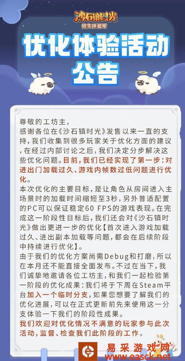 近日,国产沙盒游戏《沙石镇时光》正式发布了游戏优化相关内容的最新通知,开启了多人模式测试玩家招聘活动。 首先是多人模式的招聘活动。7月21日前,玩家可以到游戏官方博客扫描代码,填写招聘问卷。招聘时间结束后,合格玩家可以从联系信息中确认具体的测试版本的使用情况。模式的测试活动将于8月初开始。