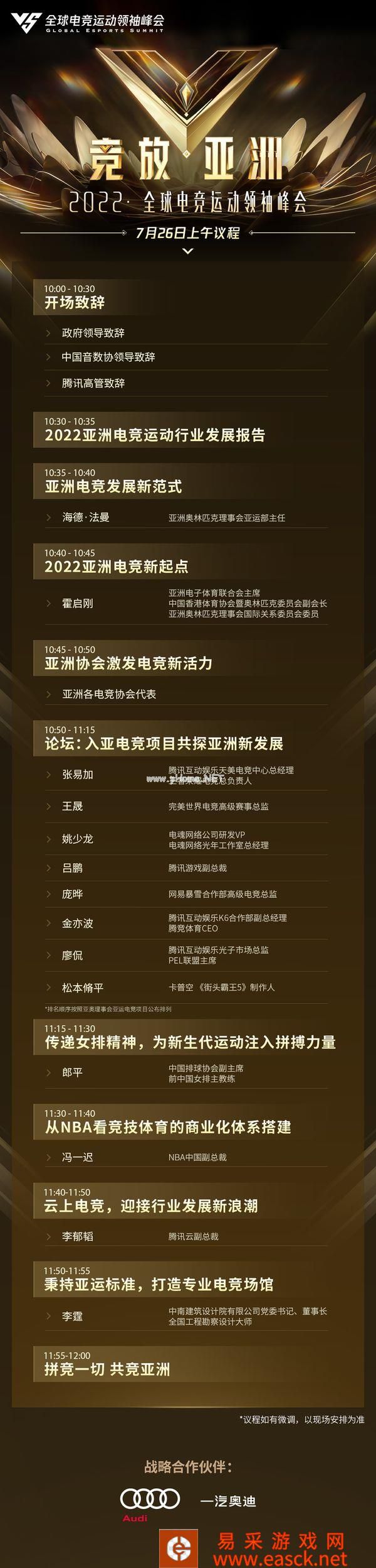 2022年全球电竞领袖峰会议程 时间:7月26日 上午 10:00-12:00