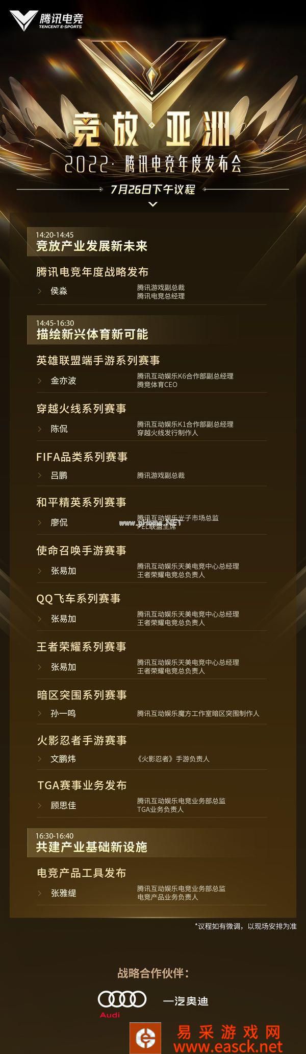 2022年腾讯电竞年度新闻发布会议程 时间:7月26日 下午 14:20-16:40