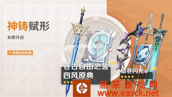 此外,神铸赋形祈祷也已开启。限制五星武器「单手剑·古代自由的誓言」、「法器·四风原典」将迎来概率UP。