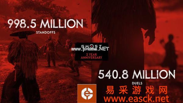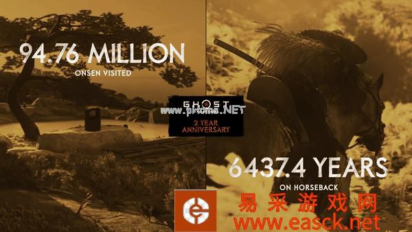 两年内对马岛之魂的相关数据: 玩家拍摄了7800万张照片; 宠物狐狸7518万只; 销量达973万; Legends共玩了9140万次模型任务; 9.99亿次对峙,5.4亿对决; Onsen9476万次访问; 骑马时间达6437.4年。