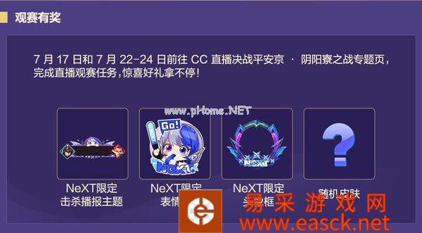 7月17 日和 7 月 22-24 日前往CC 直播《决战!平安京阴阳寮之战专题页,完成直播观赛任务,惊喜好礼不停! |