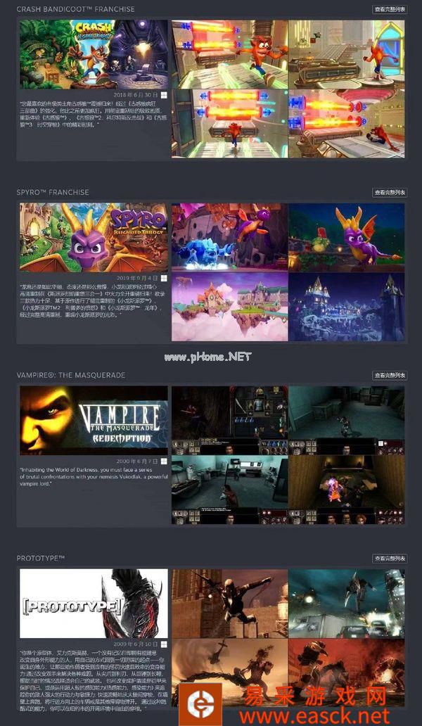 除了《使命召唤》系列,动视商店页面还展示了很多其他作品,比如流行的动作游戏《虐杀原形》、平台跳跃游戏《古混狼疯狂三部曲》、《小龙斯派罗火焰重燃三合一》、2000年发布的经典RPG游戏《吸血鬼避世:救赎》等。