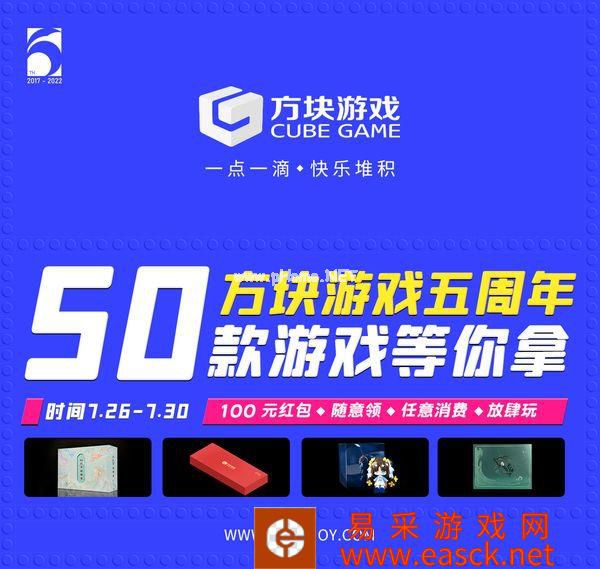 7月26日,方块游戏官方发布消息,为庆祝方块游戏成立5周年,官方于7月26日至7月30日开始为期一周的庆祝活动。 在这次庆祝活动中,方块平台开放了50多款单机游戏的免费机会,免费赠送100元通用券。方块游戏用户参与活动,不仅有机会获得游戏杰作,包括《狼》、《剑侠传奇七》、《河洛侠传奇》,还有机会获得仙剑绝版豪华礼包、游戏周边产品、珍贵汉服等。