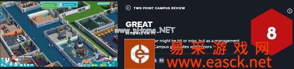 双点工作室旗下最新经营模拟游戏《双点校园》已在近日正式发售,全球媒体也已陆续解禁。目前在Metacritic上已有48家媒体为游戏的PC版进行了评价,均分84分。 媒体认为《双点校园》相较于工作室前作《双点医院》来说玩法更加丰富,细节更加优秀;这款兼具即时操作性和出色学习曲线的作品在满足了老玩家体验的同时,也能够让新玩家乐于沉浸其中。 IGN为本作打出了8分,认为本作一些奇特的幽默之处可能会被人忽视,但作为一款经营模拟类游戏来说,《双点校园》无疑以优异的成绩毕业。 |