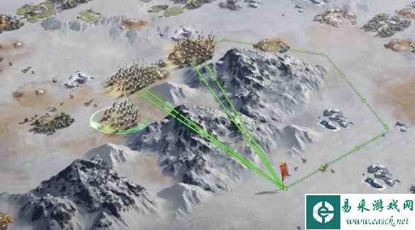 比起部分竞品类游戏程序化的直线折返而言,《三国志·战略版》可以随时调动部队的操作,让你的行军变得无从捉摸。佯攻,截击,围魏救赵,声东击西,这些记载于古兵法中的韬略,借由这个大大拓宽未知数的自由调控,得以在《三国志·战略版》中被一一实现,而那些呆板的两点折返——你不会想再去忍受的。 △真实地形障碍,这才是我需要的那款“战术棋盘” 如果说“自由行军”是一根让你可以灵活摆弄军队的摇杆,那么真实的地形阻隔设计,则为整个游戏注入了名为“部署”的灵魂。 在《三国志·战略版》的大地图中不是一个完全平铺开的大型平布,而是存在着真实的地形阻隔系统。如果直接说会显得不够直观,那么下面的图片应该能够帮助你理解: