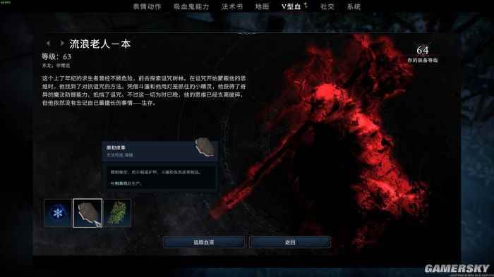 作为一个吸血鬼,你对“血统论”的推崇是顺理成章的,因为猎物血液的种类和纯度直接决定了你力量的强弱。那些走在路上的男男女女在他们的社群中或许有着自己的名字和家庭,但在你眼中不过是个移动的血包而已,区别只在于学者的血能增强你的法术,战士的血会提升你的武器技能,无赖的血可以强化你的暴击……血统越纯正的血液给你提供的增益越强大。不过要是你的血液储存已经耗光并且因此而掉血,最好就别那么挑食了。 除了你日常活动会缓慢消耗储存的血液之外,你也可以快速消耗吸食的血液来回复自己的生命值,通常来说这是种相当高效且常用的回复手段。不过在你收集到了优质血液享受高额增益以后,这就显得有些浪费了,此时还是老老实实喝药水性价比更高些。