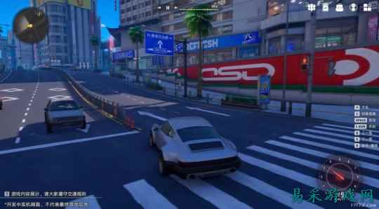 和GTA一样,车辆可以乱碰乱撞,交通护栏和路灯是可以创飞的(有场景破坏效果),红灯是可以无视的,没有交警出来扫兴。但是可能是基于国情,左下角有提示文字“游戏内容展示,请大家遵守交通规则”……真是又飒又怂。 当车辆开出停车场,开到4S展示店,有好几个画面都让我的DNA动了——说没有致敬GTA我是不信的了。