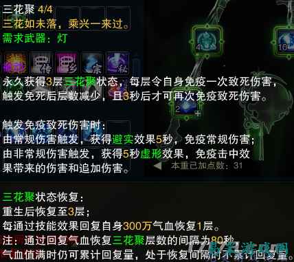 像【三花聚】这样的免死技设计就很有意思,比如它可以提供3次的保命机会,但它的免疫效果又分黄字和白字两种状态,这意味着当你受黄字的致命伤害时,后续的无敌状态也只免黄不免白——在群体PVP这样的混伤大战中,就会出现明显的短板。 这样的设计无疑是更考验玩家的操作水平,相比起简单粗暴的技能设计,新职业长生堂的可玩性我们认为非常的有意思。