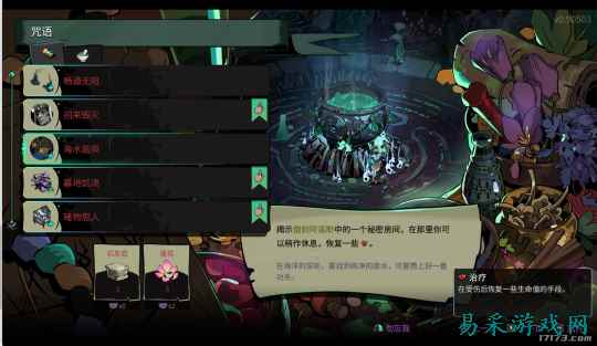 作为巫女,一口冒着绿光代表着巫术身份的大药缸是必不可少的,在《哈迪斯2》里这口大缸也是游戏最重要的养成手段。玩家可以消耗矿产、药材等物品在缸中熬出各式各样的机制加持,这些“熬制”出来的内容则会直接改变世界构成或作用在主角自身,是解锁游戏功能和机制的主要途径。