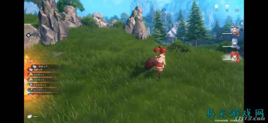 从下图可以看出,游戏的菜单是以比较隐匿且有设计感的方式呈现的,不会遮挡住主画面,左上角可能是设置、截图、完全体菜单等按钮,右上角是体力值,底部居中的一排按钮应该是经常会用到的,有“角色”、“家园”(说明有建造系统和种田玩法)、“奇波”(宠物系统)、“烹饪”、“图鉴”、“成就”等。