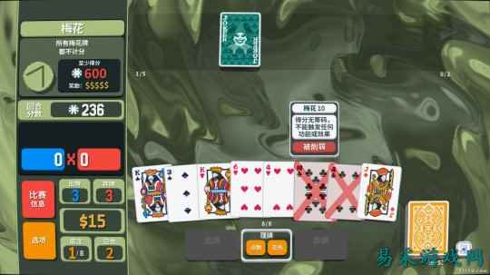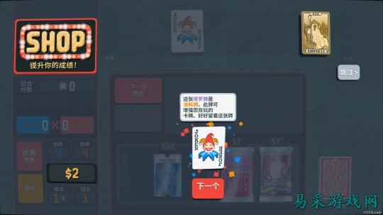 分数也是玩家出牌后系统自动结算的,玩家只需要查看自己的积分距离要求分数还有多少差距就行。甚至连出牌前将鼠标悬停在牌面上,都会有相应的分数提示,于是玩家的任务就是选择出得分最高的牌型打出即可,完全不需要对计算力有任何要求。甚至连理牌都是系统自动帮忙的,无论想按照大小理还是按照花色理,一键就能安排得明明白白。 即便如此,游戏还是设计了一套手把手的入门教程,你一边打牌一边会有小丑在旁边做说明,打完两局,基本就能将规则掌握个七七八八,对初学者非常友好。