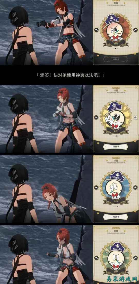 用梗图来表达就是....滴答,钟表把戏! 但是新剧本的问题仍然存在,在上一测中,当人物联觉等级20+,各种功能系统全开,仍然不明白一件事:鸣潮、无音区究竟是什么?声音,对于生活在其中的人们,究竟是什么样的意义?在新剧本中,见到的是仍然是大量声学名词的堆砌,用比喻的方式解释另外一个比喻,而没有真正用生动的故事细节串联起问题的答案。 这套基于声学的玄学概念是新剧本中完全没有舍得丢弃的部分(毕竟《鸣潮》这个名字就基于这个与声学相关的架空世界观),但它的展开过快,在开局半小时内就一股脑拍到玩家脸上,令人应接不暇、无法消化。不过关于声音的视觉呈现上,《鸣潮》的确展现出了高超的表现力。