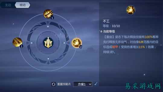 在“轻剑”状态下积攒100点剑意之后,玩家即可用“重剑无锋”技能,进入到特殊的“重剑”状态,消耗剑意施展另一套伤害更高、威力更强的剑法,自身的属性也会获得一定的提升。 当玩家在“重剑”状态下,消耗完100点剑意之后,又会回复至“轻剑”状态,需要重新积攒剑意。