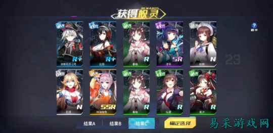 《拂晓》与同类型游戏一样,抽卡捞船才是它的真正核心,就说是收集后宫也不为过。作为二次元养成游戏,妹子与后宅养成可是重中之重。初入游戏系统会给玩家3次十连抽的机会必出SSR,可以根据需要选择其中一组。