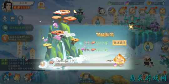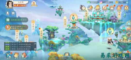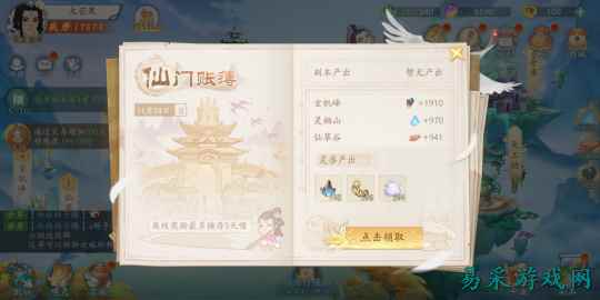 游戏的风格虽然是仙气十足了,海外仙山之中,灵栖山、玄机峰、炼丹房、玉虚殿等建筑映入眼帘,类仙剑画风,但是UI的布局略显凌乱,尤其是收菜的图标和游戏的玩法指示混在一起,整体感觉比较杂比较散。