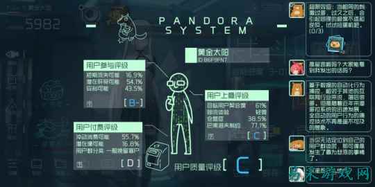 它会对你拿出这套“潘多拉系统”,上面标注着作为玩家的你,在这个游戏当中会不会有付费的意愿,对这个游戏的粘性如何,有没有流失的可能等等,而这个系统,才是正式揭露这款游戏“真正嘴脸”的东西——