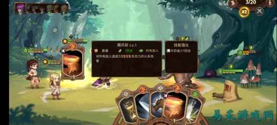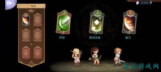 由于在刚开始探索时,每个萌妹勇士只拥有初始技能,这些技能都是白板,既没有元素属性,也没有强横的输出能力,完全不足以应付即将来临的敌人。玩家必须从奖励的技能卡牌中,选择其一添加到对应勇士的技能栏中,如果选择的技能已有,那么便会在局内叠加,一方面能够强化技能阶级,获得升阶所提供的固定效果;另一方面,可以再从随机提供的两个效果中选一。