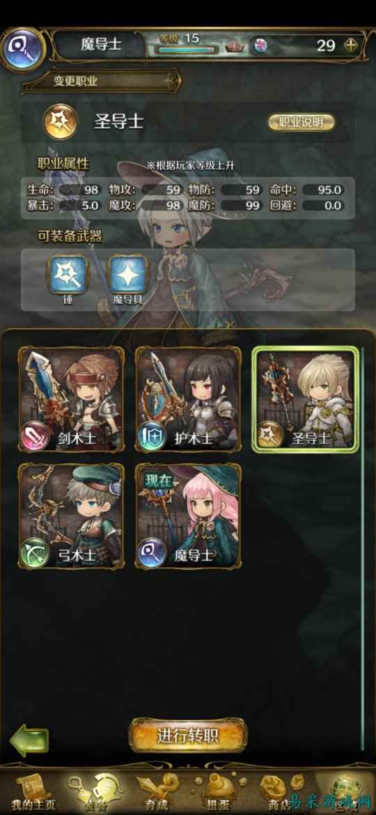 游戏*有五种职业,分别是擅长强化攻击的剑术士、攻防兼备的护术士、辅助同伴的圣导士、远程输出的弓术士以及爆发魔法的魔导士。玩家可以在其中任意、随时转职成不同的职业,以应对不同的作战需求,比如在对付高魔抗的boss时,转职成弓术士是绝佳的选择,类似的,魔导士则能对高物防的怪物形成克制,团队作战时圣导士亦是不错的方向。