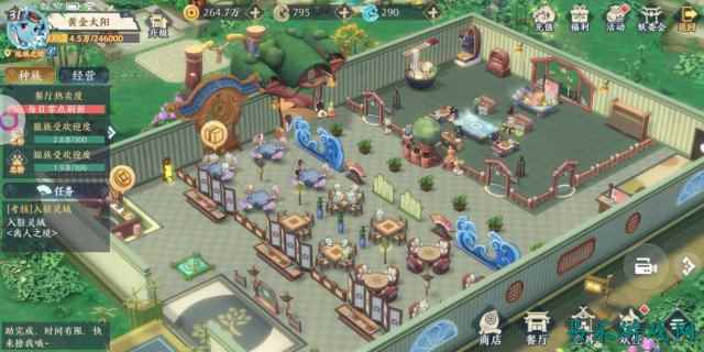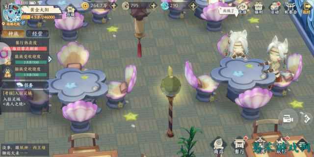 另外衍生于人物养成的玩法,则包括铸心境(升星材料副本)、召唤(氪金点无需多说)、竞技场等等,而逼氪骗氪很厉害也是人物养成的一个大坑,带来了非常不好的游戏体验,这点就是最直接的缺陷。接下来重点说说餐厅。 餐厅的养成很有意思,这点必须承认。就目前来看,优点缺点均有,先说说优点。 上面在画质中提过,餐厅画质、家具的风格都无可挑剔,设计的非常精美。玩家可以通过家具币、金币还有活动三种方式获得家具和装修材料进行设计。