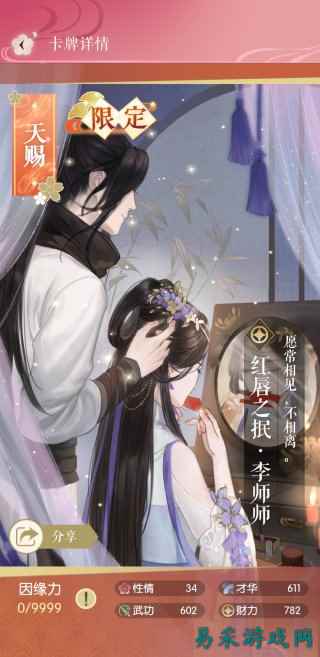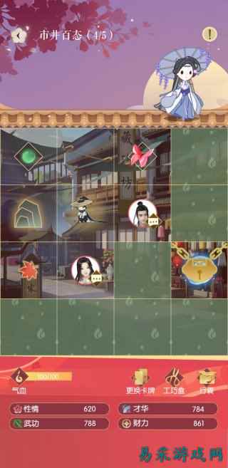 本作无论从UI设计还是游戏内容画面,在古风中达到了一定的水准。其中最值得说道的就是玩家搜集到的游戏角色卡面。目前卡牌是按照男女角色、结局以及逆水寒来分类的。男女角色各有5人,均是逆水寒中的知名角色。