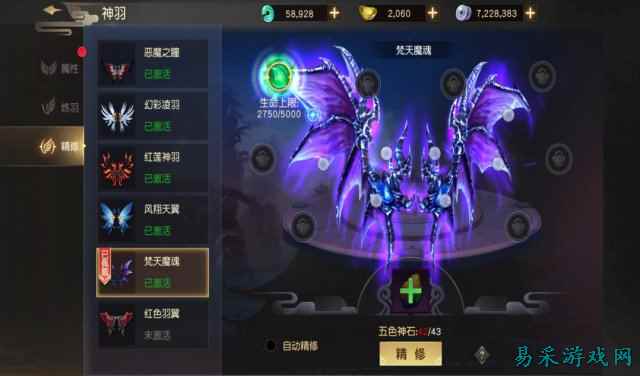 而说到额外属性上,则可以说是多种多样了,基本上能在其他游戏见到的内容,在本作中都能见到。主要分为坐骑、神羽、头衔、经脉、和战灵。其中坐骑主要通过仙草喂养提升,还能打造坐骑装备进行提升,而神羽除了炼羽之外,还需要通过精修来提升属性,值得注意的是精修需要在一种神羽精修完后才能对下一个神羽进行精修。而头衔则通过令牌提升,除了属性提升外还有较为唬人的称号效果。值得一提的是不论是坐骑还是神羽,升阶之后外形也会随之改变,对于喜欢酷炫外形的玩家而言,也算是一大福利。