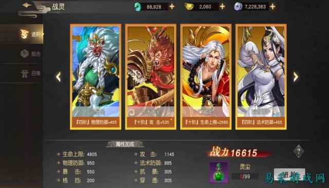 至于经脉则和武侠类游戏一样,需要通过培元丹进行修炼,达到瓶颈后还需要通过真气丹进行突破。而战灵则是一般卡牌游戏的套路,通过抽卡获得英雄,通过提升英雄和英雄间的羁绊进行属性提升,唯一的区别只是在本作中英雄无法召唤罢了。