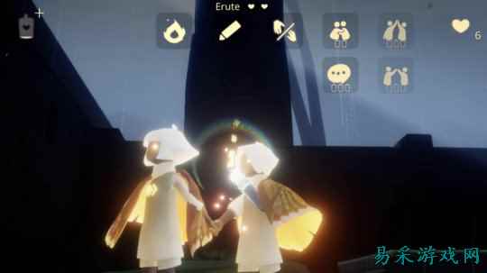 蜡烛是游戏中的一个关键性道具,玩家的能力之一就是用随身携带的蜡烛去驱逐黑暗,传播光明。蜡烛不仅可以提升玩家的个人能力,还可以用来和全世界的玩家交互和沟通。当你点亮了其他玩家的蜡烛,ta就不再是一个阴影下的黑乎乎的小人,和你一样有了光彩,就像ta走进了你的世界,从此有了意义。当玩家将光明分享出去的时候,可以获得新的能力,并且解开一些隐藏的信息,比如这个世界过去发生的事情。 比起《风之旅人》,《光遇》有着更多的社交可能性,不仅有更多的个人外观自定义要素,也有着更多的交互动作和方式,随着两人的交流加深,你先是可以为ta取昵称,然后牵手,再然后直接聊天……没错,在这里,两人之间是可以直接打字进行对话的,心底的话儿再也不会无处诉说只靠悟了。 要走完游戏的全流程,不是孤身一人就能搞定的。这是一款侧重于分享和协作的游戏,玩家只是一个微小无力的个体,找到同行的伙伴就成了一件必要的事情,很多的谜题和障碍都需要合力解开。当玩家与玩家连接,就能克服各种各样的困难,传达出“团结就是力量”的意涵,一起牵手前行,一起变得更加亲密。