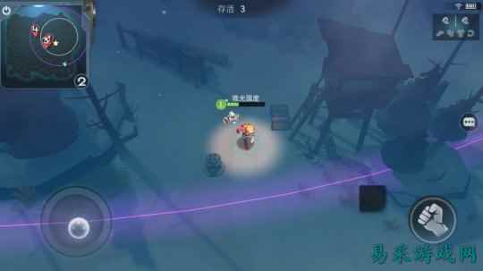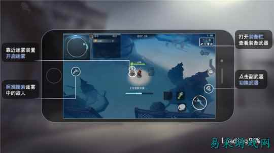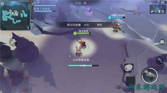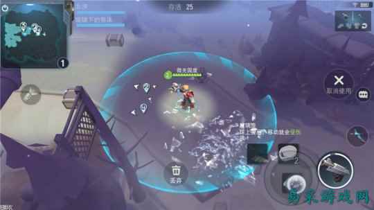 游戏采用了左键摇杆+右键技能的操作模式 《迷雾求生》目前版本的玩法开放了演习、匹配、占地这三种模式,每种模式都有单人与组队,组队玩法以3V3V3V3这种看似多人MOBA的乱斗。演习模式就是主流的生存玩法,人数为28人,只要躲过度全坚持到最后就能胜利,即便不杀光靠躲藏也是有机会撑到最后的;匹配模式的机制是主流FPS的无限复活玩法,判定是看杀人多少;占地模式则是点亮落地灯,点的多赢率就越大。 战场上的武器多以枪支为主,所以大多数时候是FPS感觉,不过在准星和射击速度上没有FPS的快感,有待赶紧。另外或许是因为参战人数限制的关系,三种模式玩起来会比较休闲,节奏较快,加上画面有些卡通和末日感,相信还是很容易被用户接受。