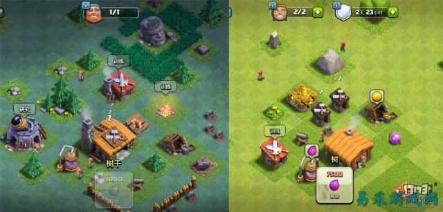 对比夜世界和第一世界的画风,我们能拿很明显的感觉到夜世界的视觉效果会有一些梦幻与卡通的感觉,加上COC原本就是很清新的风格,多类型的手游很少采用夜这种元素,所以不管玩家在夜世界做成什么样子,夜世界的画面感很容易被引起关注。