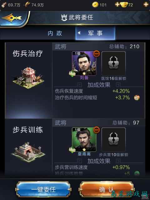 笔者对SLG游戏的理解分两块,一块是游戏整体的感觉和代入,比如新手引导、美术视觉,剧情情景等一进游戏就能直接看到的东西;第二块是游戏在系统、模式、养成、战斗机制上的表现,有没有创意,好不好玩,难不难,氪不氪金等。 《乱世王者》的画面来说有些像多年前玩过的各种SLG页游,因为整体的场景搭建和建模原型都很像,没太多能让人觉得焕然一新地方。但是如果细看,还是能看到一些有趣的东西,比如在主城左下向右拉东画面时,水上的云层会跟随你画面的移动方向飘动,城外在开垦农田过程中也能够看到农夫耕种搬运这样的镜头,只不过因为是俯视视角,从云层到地面多少有一些模糊,但游戏整体的画面说的过去,毕竟玩国战和SLG的玩家不会太注重画质多么的精致。 不太有新意的主城形象 《乱世王者》游戏中,玩家扮演的是一位统领君臣征战天下的一位*。游戏的开场剧情讲的是你帮助了某城主抵御外敌,城主决定把女儿小乔嫁给你(周瑜:???),但这时遭遇董卓进攻,而小乔也被董卓抓走,你必须要去救他回来。 游戏剧情算不上太多的创意,但在开场使用每人这种形式拉动玩家情绪,确实这比什么建国大业、统一天下的帝王梦要更实际一些。 而在救美过程中,开工建造、招募名将、征讨董卓、抵御外敌等一些列玩法也会结合剧情串起来,所以整体因为剧情的代入与SLG战争本质的融合,让喜欢SLG的笔者觉得很舒服。 除去前期那些有着代入感的剧情、画面这些内容外,游戏的核心玩法放在了武将的养成与“运营”上。 养成就是我们熟悉的收集(招募)、能力培养(数值提升)、技能学习、上阵组合这三块,“运营”指的是武将可以派到职能塔(如内政等)内通过自己的属性或者技能来提升职能塔的效率,比如内政与军事这个职能塔中,安插辅助属性的了刘备可以让伤病提升4.2%的恢复速度并缩短CD时间,但如果是添加其他武将,那属性就会变为其他。虽说《乱世王者》本质是SLG品类,但在武将方面也表现出了很多的卡牌元素。 前期,玩家干的事儿就是让自己变强,通过升级主城、储备粮草,提升君主(玩家扮演的角色)级别,开启各类具有攻防、发展的兵营、集市这些建筑来实现。君主升级可获得技能点,技能点的应用主要也是以增加数值为主。 为了战争,这就是君主技能点的价值 获得武将的方式分两种,一种是做任务获得武将碎片进行合成,另一种是用游戏货币与指定货币(可用于RMB兑换)抽卡招募,很常规的招募方式。武将可以学习多个技能,但技能大都是以提升职能塔属性为主的,比如提升多少的远程攻击, 提升粮草收获的量等。 在这个阶段玩家的动力依然取自于剧情的引导,如果是不怎么爱看剧情的用户,可能从这里会开始流失,因为大部分的SLG游戏前期都是这种套路,有些无聊;但如果是有关注剧情的用户,可能还会有进一步的操作。而这一过程中NPC也会偶尔跳出来给你报信小乔有没有被凌辱、过的好不好,有没有跟小布有一腿什么的,来刺激你的成长进度,毕竟自己的老婆救不回来怎么可能打赢天下呢? 到了中后期,伴随着各种系统与职能塔开放,玩家之间的交互则从剧情PVE变更成为PVP。游戏的PVP其实与率土之滨很像,玩家在大地图上可以随意挑战对手,挑战前会确定上阵武将,不同武将组合会有属性加成,类似卡牌手游中的羁绊关系,挑战中可以看到武将行进的路线,不过没有太多战斗画面,结束后会告知战争发起者胜利OR败阵。关于PVP没有特别差异化的设定。 《乱世王者》的SLG的核心点主要放在了武将养成、收集与运用上,要比我们见过的SLG更加深度,有意思,但因为武将的作用最大化,因此玩家因为收集与培养,会比付出的时间和金钱要格外的多一些。 游戏整体内容其实不难,但在成长中的每个时期多多少少都会有一些比较难的任务,而这些也会是非SLG资深玩家的一道门槛。 |