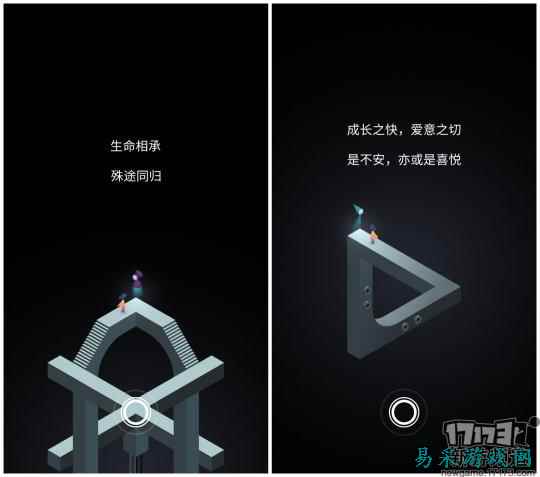 《纪念碑谷2》在艺术与玩法结合上与前作不遑多让,基础玩法依旧是建筑物的倒腾变换,但为了制造更大的惊喜,游戏立志将更多天马行空、超现实的原理运用进来,正所谓脑洞大开,变化莫测的建筑令人眼花缭乱,真真耍的一手好几何。 撇开与前作相似的不再赘述,我们来聊聊续作中耳目一新的玩法: Ⅰ.自定义万花筒——在每一关通关之后,玩家可以拖动星光手绘出万花筒样式的字符,作为通关的标志也会显示在关卡上。 Ⅱ.“踏着一片火树银花来找你”——关卡中,通过光合作用在花盆中催生具有不规则形状的植物,既可以通过生长帮助主角到达另一个更高的平台,也可以裹挟着主角进行整体移动,并在最终光亮完全到来之时神乎其技地从花骨朵儿里孕育出主角来。 Ⅲ.层层嵌套亦真亦梦的德罗斯特效应——「神圣之门」关卡中,主角需要穿越波谲云诡的虚幻空间,或无视重力在天花板上行走,或捣鼓腾挪最终走向离别的船帆,嵌套之完美,设计之超现实,实在令人叹为观止。 Ⅳ.老朋友图腾也在续作中进化了——可以做建筑物的支柱,可以当主角的平台,也可以当绝对安全的传送门。看主角在图腾的门边探头探脑的样子实在有些可爱,对老朋友也是充满了信任。 Ⅴ.几何图形的传递组装——这个玩法在很多拼图游戏里常见,比如说《zenge》,而在《纪念碑谷2》中,混淆视觉的空间错位与几何的传递组装相结合,对于玩家的想象力也是不小的挑战。 虽然《纪念碑谷2》的核心操作玩法并没有太大的改变,但花样繁多天马行空的创新设计也给玩家带来了新鲜惊艳的良好体验。不过在鲜游酱看来,续作总体难度比前作小了很多,关卡设计虽然令人惊叹,但终归还是局限在「混淆视觉」的基础玩法上,所以与其说是《纪念碑谷2》,鲜游酱觉得更像是“纪念碑谷1的DLC(扩展内容)”,那如果超脱出视觉错位这个范畴还是纪念碑谷吗?这就是另一个话题了。 低多边形(low poly)的建筑风格、明媚渐变的色彩线条一直是纪念碑谷最具特色的亮点。依旧是长廊、圆顶和飘逸的彩旗,《纪念碑谷2》的色彩搭配显然更加大胆和别致,极具现代极简主义风范的扁平化建筑,2D与3D效果随着玩家的操作转换自如。 阴雨连绵雾气缭绕的窄紧山谷,随着主角向上行走而呈现出拨云去雾之势十分具有画面代入感。 截然不同的色彩搭配和场景构筑,令整个冒险充满了不可思议的奇幻体验,既感叹关卡设计之精巧,又赞美美术画风之浑然天成美轮美奂,随手一截图就是一张精致的壁纸,吸引无数玩家们流连忘返。 相对于前作艾达公主的孤独救赎之旅,《纪念碑谷2》的整体剧情则是以温情为主,叙事主体也从单人变化成了母女二人,这意味着玩家有时需要分别操控两个角色的行进。 这是一个关于亲情和成长的故事,从最初的「罗尔向纪念碑谷介绍她的孩子」,到目送孩子自己踏上历险的旅程,再到孩子成长蜕变成功,剧情一直是紧凑平滑的,唯一波动巨大的部分也不过是第一次历经的母女分别,建筑崩塌的惊慌和小别重逢的依赖,浓浓的母女之情通过几何解谜的推动展现的淋漓尽致。 双角色的亮点在于不需要借助环境上演独角戏,彼此的互动和场景的渲染就可以向玩家传递出丰富的情感体验。续作中母女二人的动作刻画得特别传神,有一关母亲被困在高塔上,孩子在迷宫中为她奔走解谜,此刻的母亲虽看不到脸上的神情,但晃着小腿坐在高塔上吹着笛子,却也显示出对自己孩子充分的信心。 每关的最后,母亲罗尔与纪念碑谷的神灵都有一小段文字交流,虽晦涩难懂,但也能感受到母亲对孩子的殷切希望,放手、成长、然后薪火相传(怒吞了这碗鸡汤)。文字很少却足够饱含深意,这期间剧情的留白,就通过更多的关卡和互动让玩家自行解读,各有各的理解和收获。 双角色的设定在游戏中并不少见,母携子促成长也不是什么新鲜的题材,但借助超现实的几何解谜来讲故事的手法,却能够很好地将剧情深入人心,值得赞叹~ 《纪念碑谷2》在关卡创新和艺术水准上的表现都有目共睹,30元的买断价格绝对物有所值,虽没有完全超脱出视觉错位的玩法范畴,双角色的题材设计也并非完全新颖,十四关的关卡流程也稍显简短不过瘾,但whatever,它惊艳依旧! |
