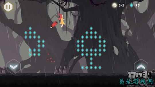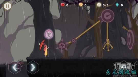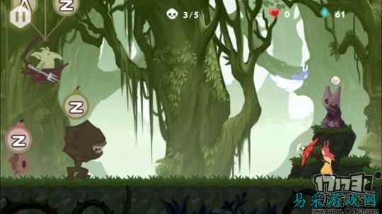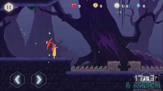 游戏采用横版2D界面,清新唯美的美术风格很快就将玩家带入了一个生机盎然的童话世界,远近景层次分明,贴图细节精致,色调的精心搭配和整体梦幻般的画风给人一种十分舒适的感觉。 主角是一名撑着红伞的女孩,明媚鲜丽的造型在相对暗色调的背景衬托之下显得尤为耀眼。且红伞作为女孩的“输出武器”,游戏也给予了它独特的动作和特效设计,特别是跑酷关卡中变换作发光的花朵,移动过程中的点点光芒尤为唯美动人。 众所周知,佛跳墙是集山珍海味于一体的一道名菜,而开发商似乎就打算将《时空旅梦人》打造成为“游戏里的佛跳墙”——集所有独立游戏玩法于一身,让你一次玩得够! 游戏一共有八个章节,每个章节有三个关卡,分别对应着解谜、跑酷和手势消除BOSS战三个玩法,以收集发光兔子和到达终点为目标。 解谜关卡,在控制角色行进和跳跃的基础上,增设了各种危险和障碍,比如说跃过下落的滚石、躲避滴落的毒液等,而解谜的设置往往建立在利用周遭事物为行进搭建一个垫脚石,属于经典的“就地取材”的解谜方式,比如点击石像,石像的顶部掉下来,可以作为跳上高地的台阶。 谜题比较合理且难度适中,大多来源于生活中的思维逻辑,玩家稍作思考便可以领悟谜题的寓意。但不得不吐槽的是,道具的操作实在不太灵敏,比如说我们知道要抡起这块巨石去敲击靶子,但却总是拉不到适合的高度,给人一种“三过家门而无法入”的无力感。 第二关是跑酷的玩法,全程主人公的行进不再受玩家控制,保持一个极快的速度行进,玩家只能操作角色的跳跃和下蹲。游戏赋予了这个关卡“二段跳”的玩法,以此躲避过程中的各种障碍。角色反应的灵敏和游戏动作的流畅无疑是为玩家增加了很大的信心,但自动行进过程中触碰到平滑的高一阶平台就算Game Over的设定,不免令人有一种生搬硬套的感觉。 最后一关的手势消除BOSS战无疑是整个章节中最具挑战性的关卡了。每个萌萌哒怪物都带着一个写着符号的气球,玩家通过在屏幕上画手势来戳破气球,避免怪物到达红伞女孩的位置。顺利消灭五轮怪物潮之后,即通关。这关的新颖和难度就在于手势画出来的不规范和无法识别,常常出现连画几次都失败的情况,这就极大地考验了玩家的手速和画线的准确性啦,十分有意思!
