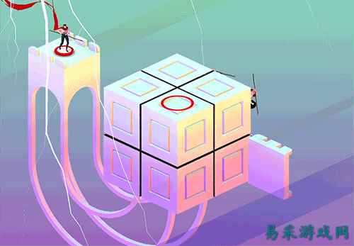 总之,这款游戏在玩法和创意上确实超脱了“纪念碑谷附属品”的范畴,真正做到了将几何力学完美融合进魔方和战棋元素。烧脑且具备挑战性,很适合爱好动脑的玩家一试。 隐晦剧情带入视听感受胜在细致 《欧几里得之地》除了在玩法上大有创新之外,其音色表现也算上佳。 画面呈现丰富的渐变色,魔方在旋转过程中会折射出不同的明亮柔和的色彩;BGM是舒缓的钢琴曲,还可以听到鸟鸣振翅的声音。 整体营造的游戏氛围很适合放松和思考,音色表现上与《纪念碑谷》有异曲同工之处。 即使是需要击碎敌人战棋这样“血腥暴力”的举动,游戏呈现的特效表现也是轻轻一击,敌人化作纸片状散开。 这些都是值得称赞的点,但偶尔也会出现不合时宜的场景——